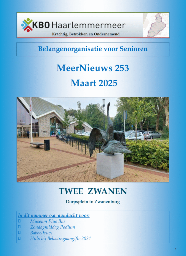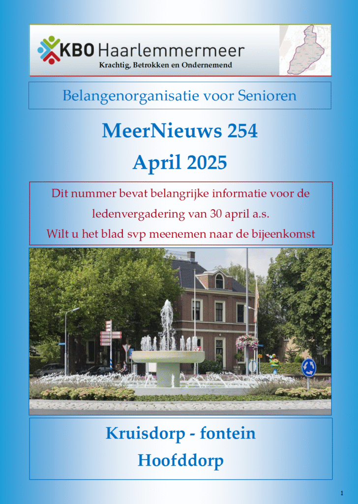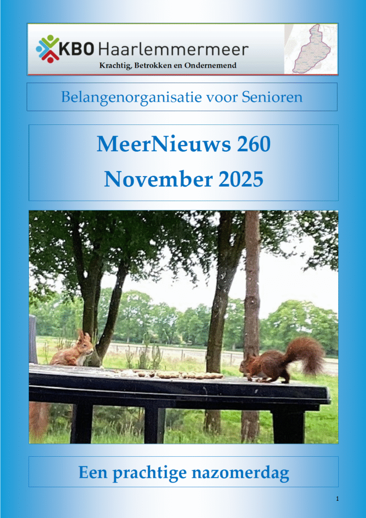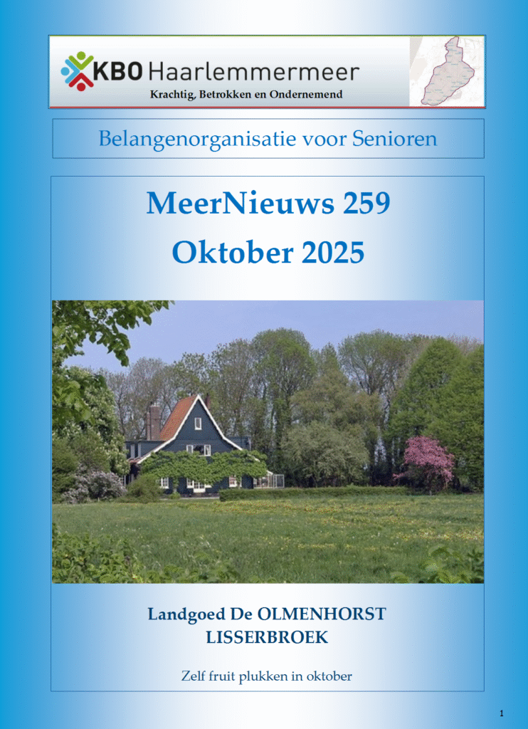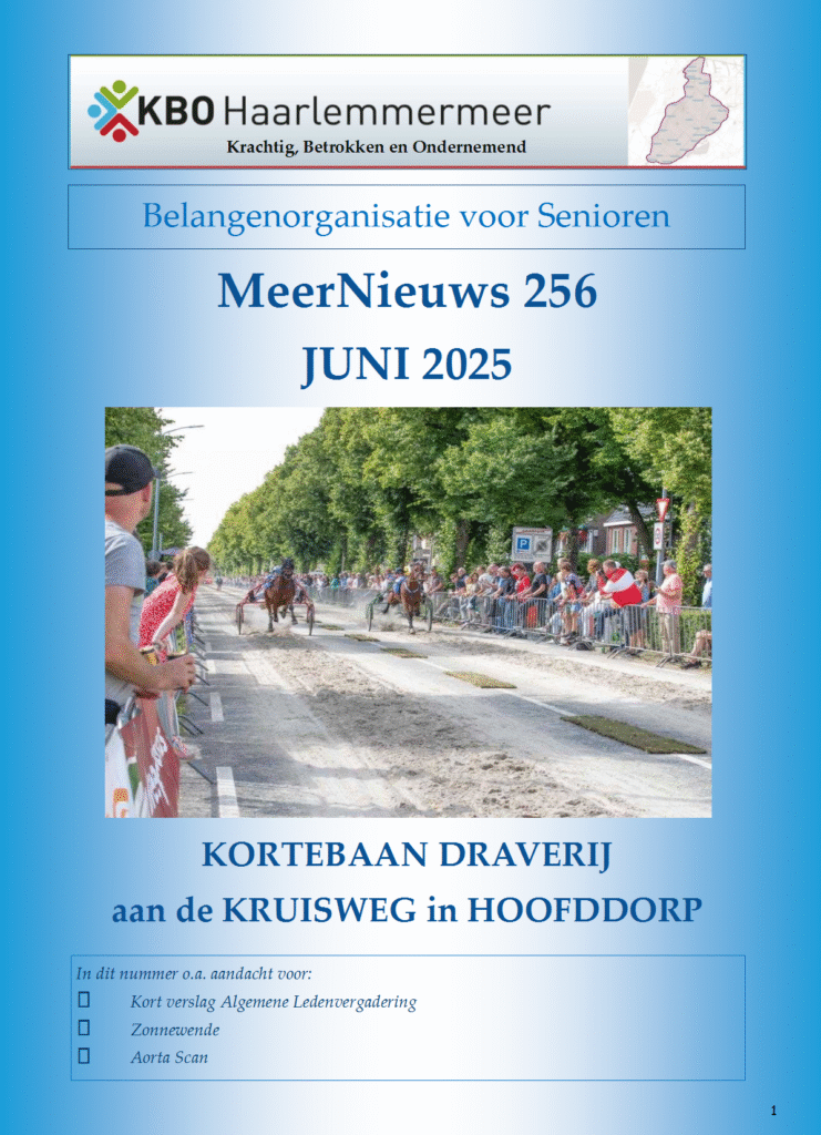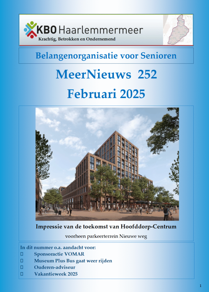 10 x per jaar verschijnt tegelijk met het KBO-magazine van KBO Hoord-Holland ook ons eigen MeerNieuws.